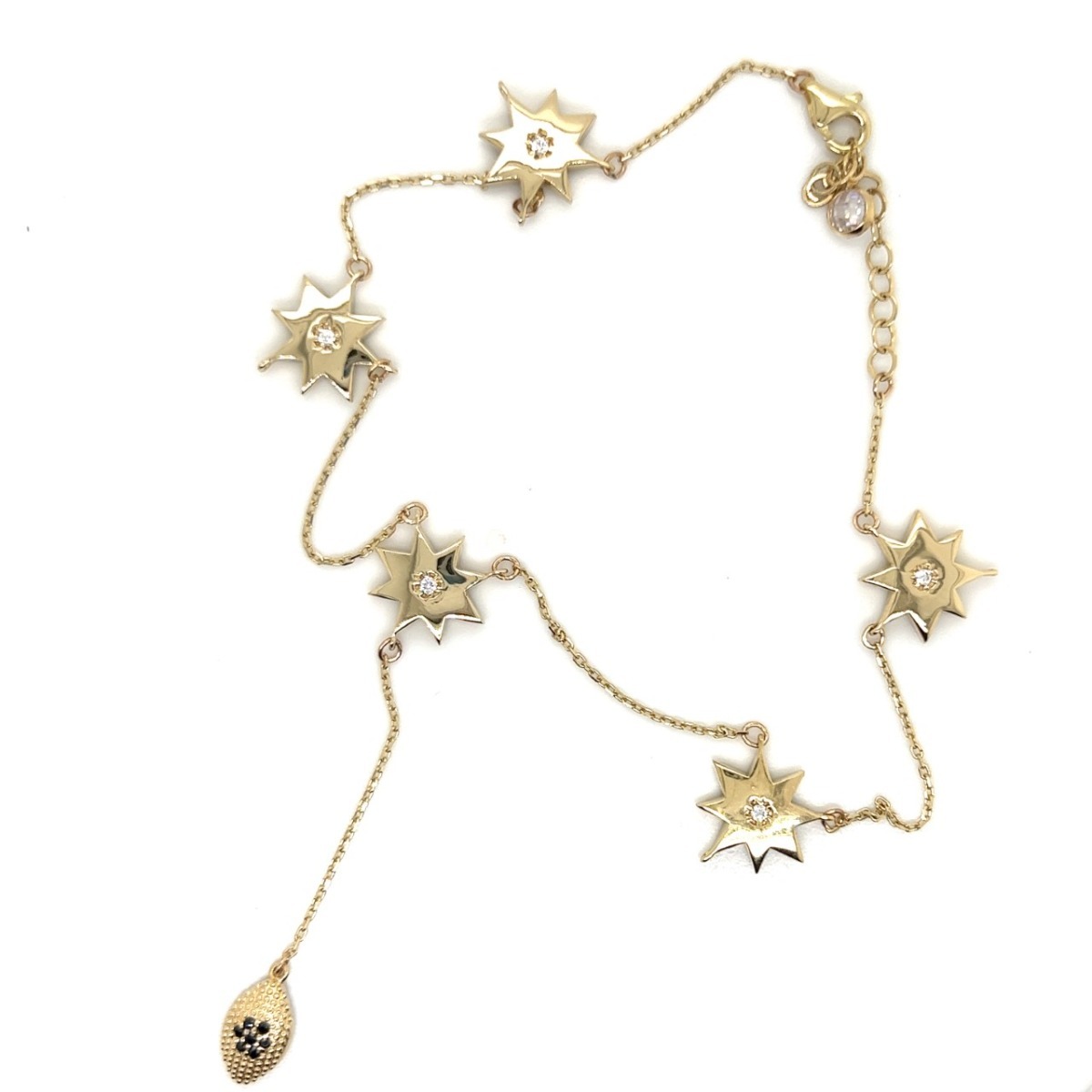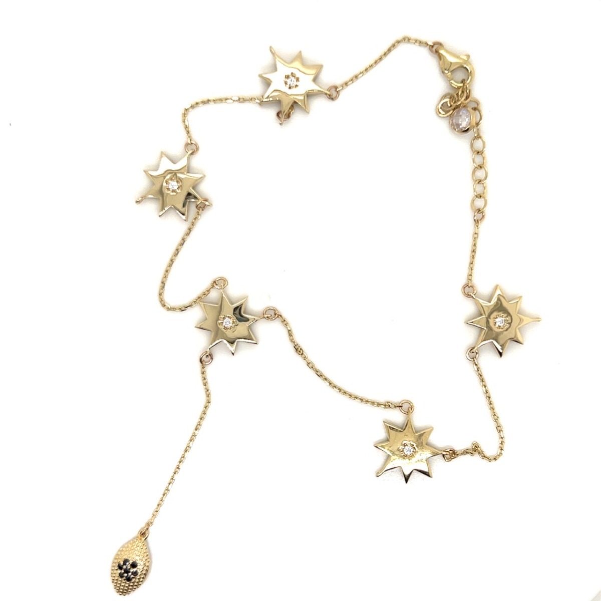 Bratara de picior cu stelute din Aur Galben total lucios 14K Gold Ankle Bracelet