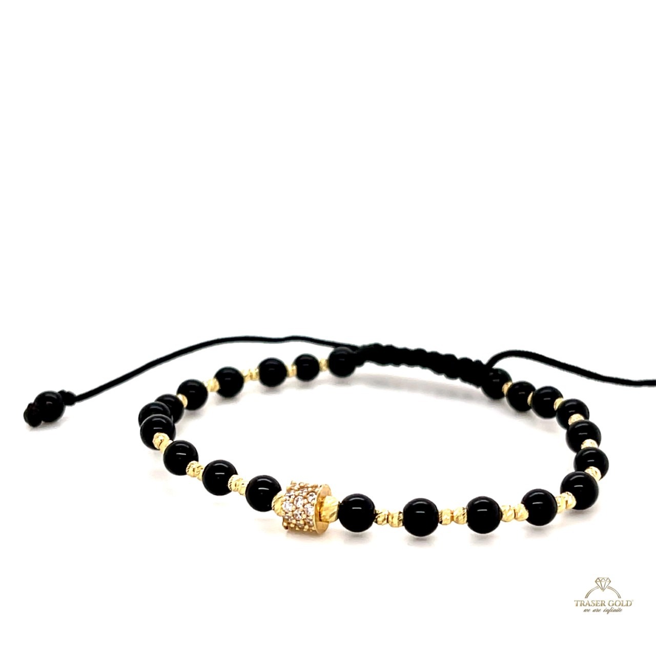 Brățara din aur galben pe șnur din mătase te va cuceri pe loc. Această brățară este realizată pe un șnur de mătase cu bile fatetate în aur galben.