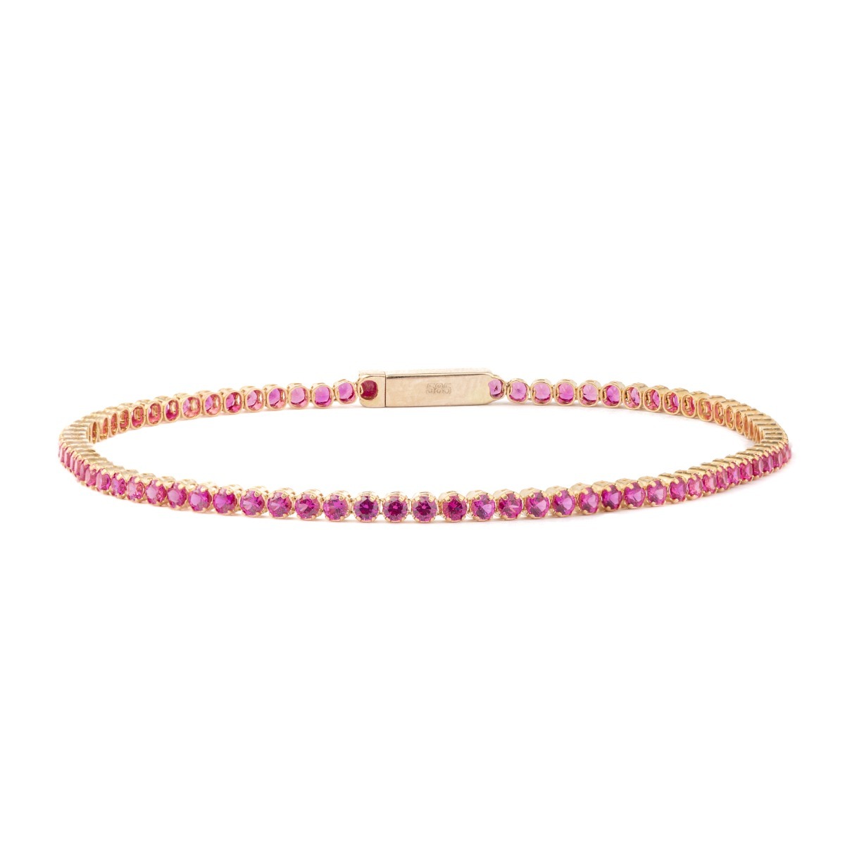 Tonurile frumoase de roz și strălucirea subtilă a aurului galben se combină perfect în această brățară Tennis pentru a adăuga eleganță și feminitate look-ului tău.