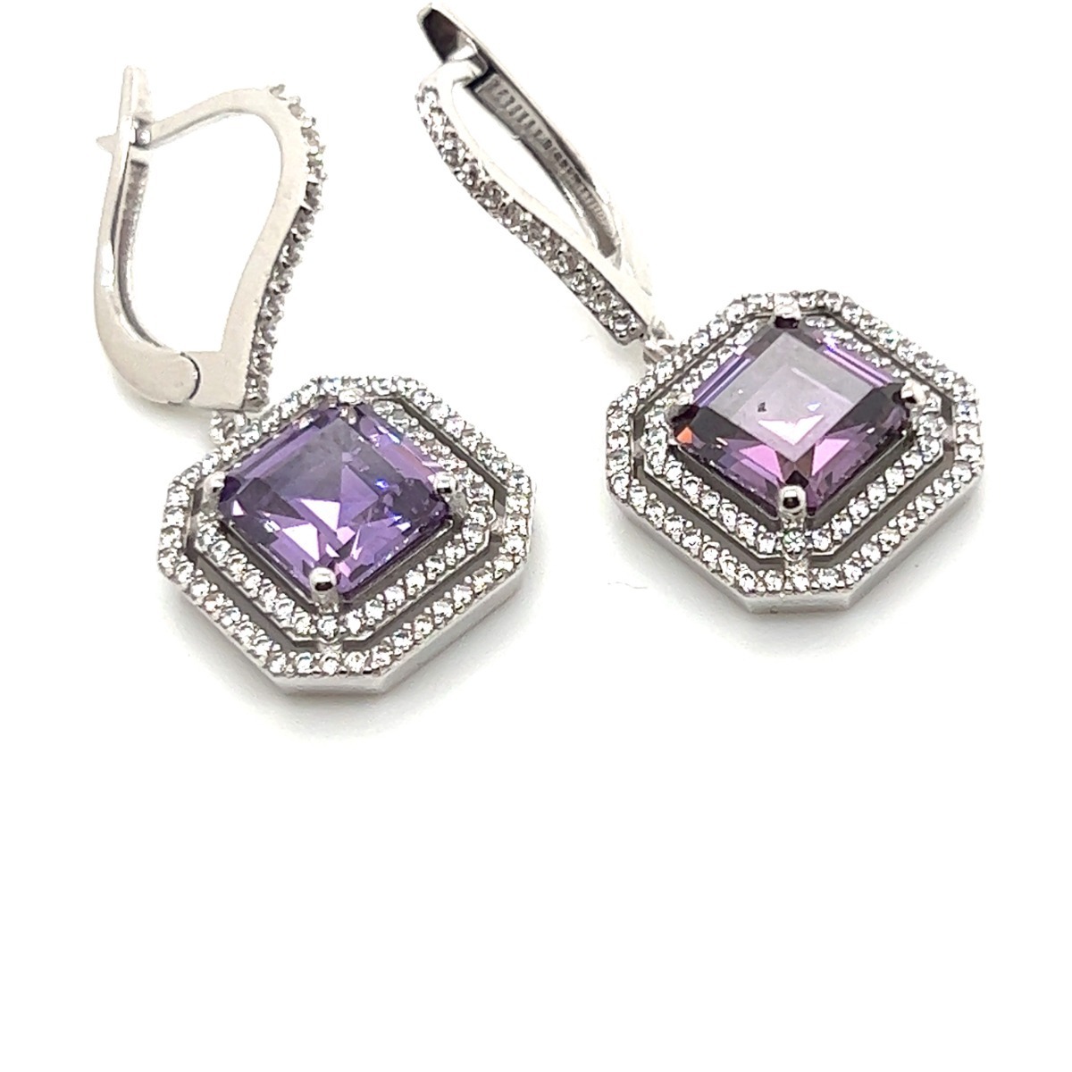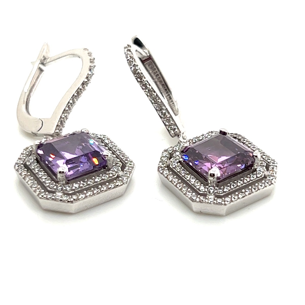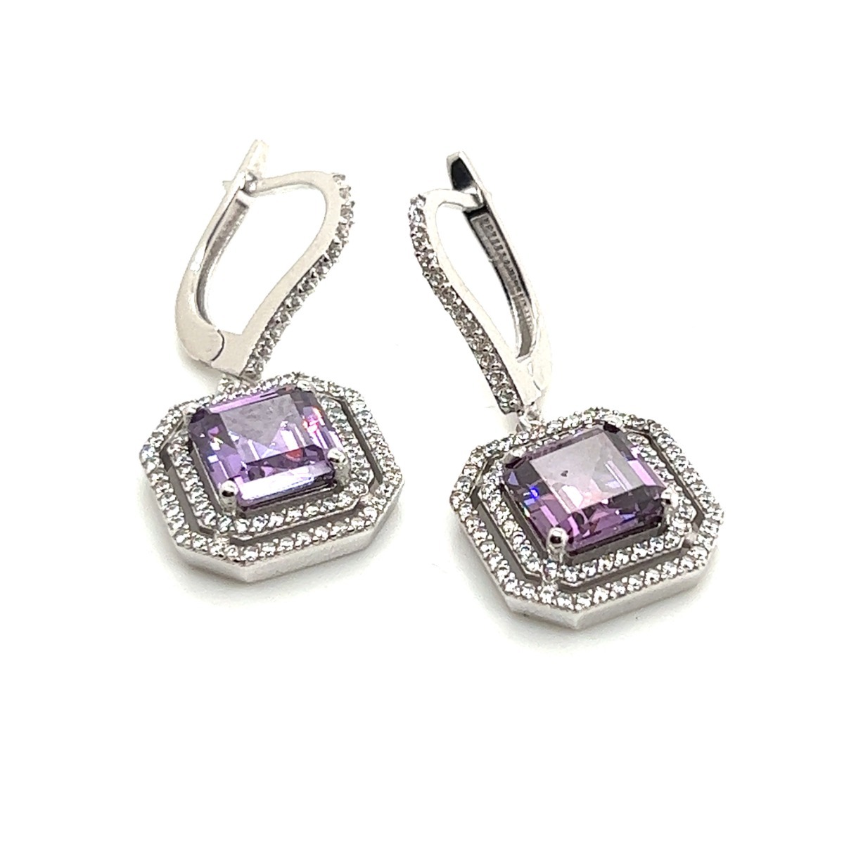 Cercei cu piatra mov din Aur Alb 14K Gold Earrings